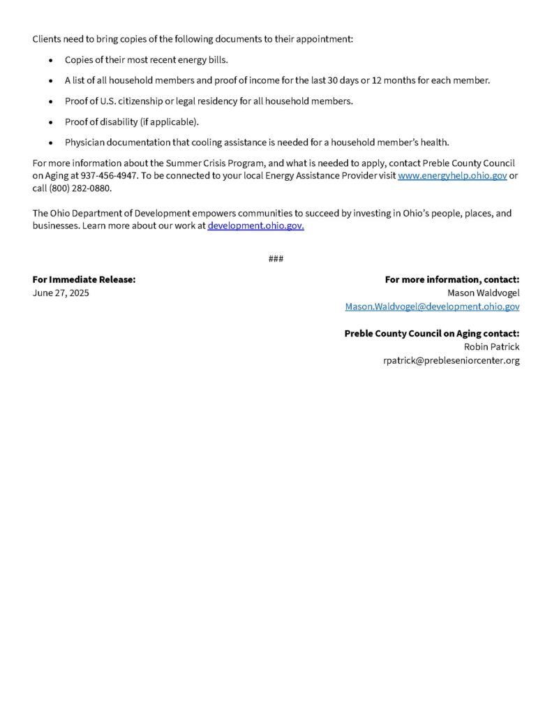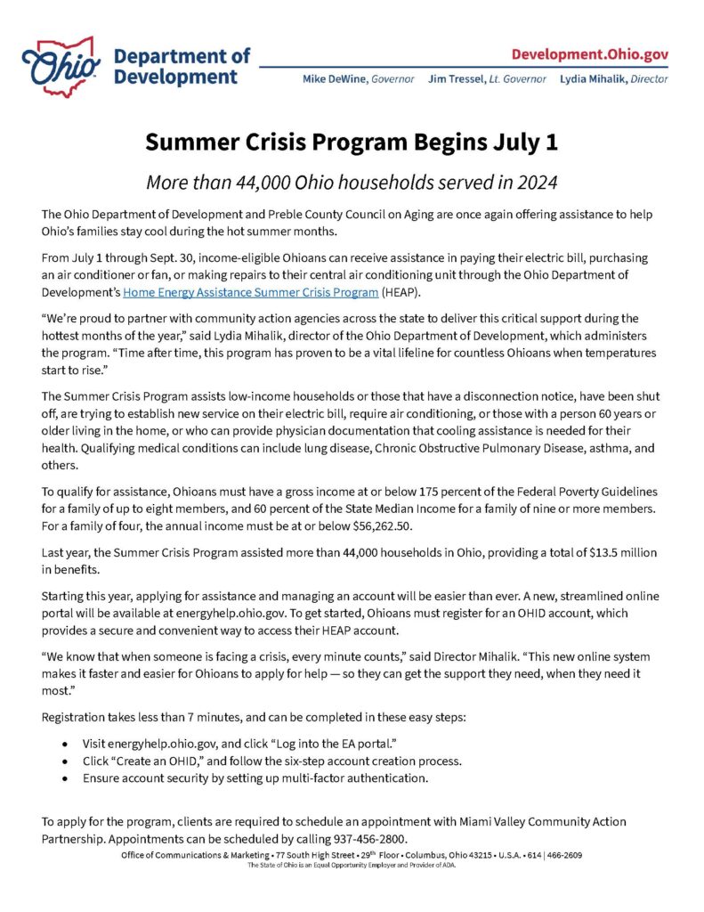 For more information on above Supportive Services, Volunteering, and/or Support Group Meetings, please call the Preble County Council on Aging at (937) 456-4947.